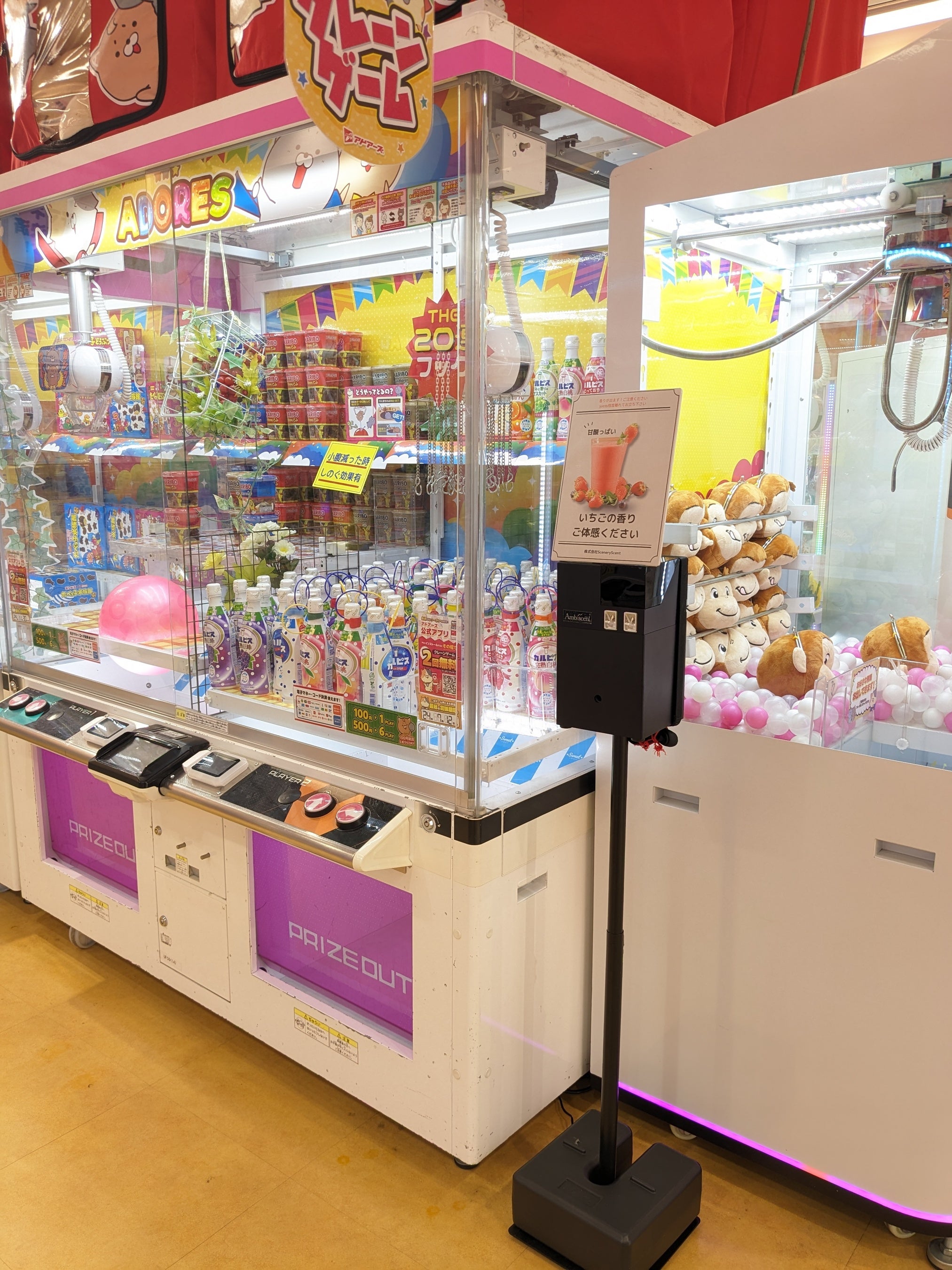 株式会社ワイドレジャー(福岡県小郡市)が展開するゲームセンター「アドアーズ渋谷店」では、クレーンゲームの隣にAmbiscentを設置。景品の香り「いちごの香り」を体験することで、インバウンドにも大好評。言語に頼らない販促効果が期待できます。