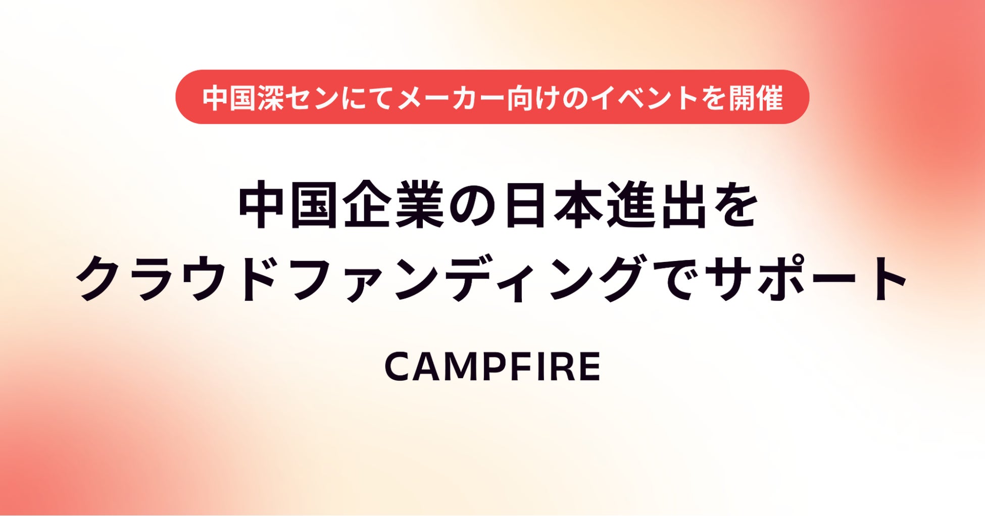 株式会社CAMPFIRE(本社:東京都渋谷区 / 代表取締役:家入 一真 /以下、CAMPFIRE)は中国企業の海外進出支援事業を展開するVinyl Inc.(本社:中国広東省深セン市 / 代表者:Andy Peng/以下、以下、Vinyl)と共催で日本への参入を目指すメーカー向けに、中国でオフラインイベントを初開催します。