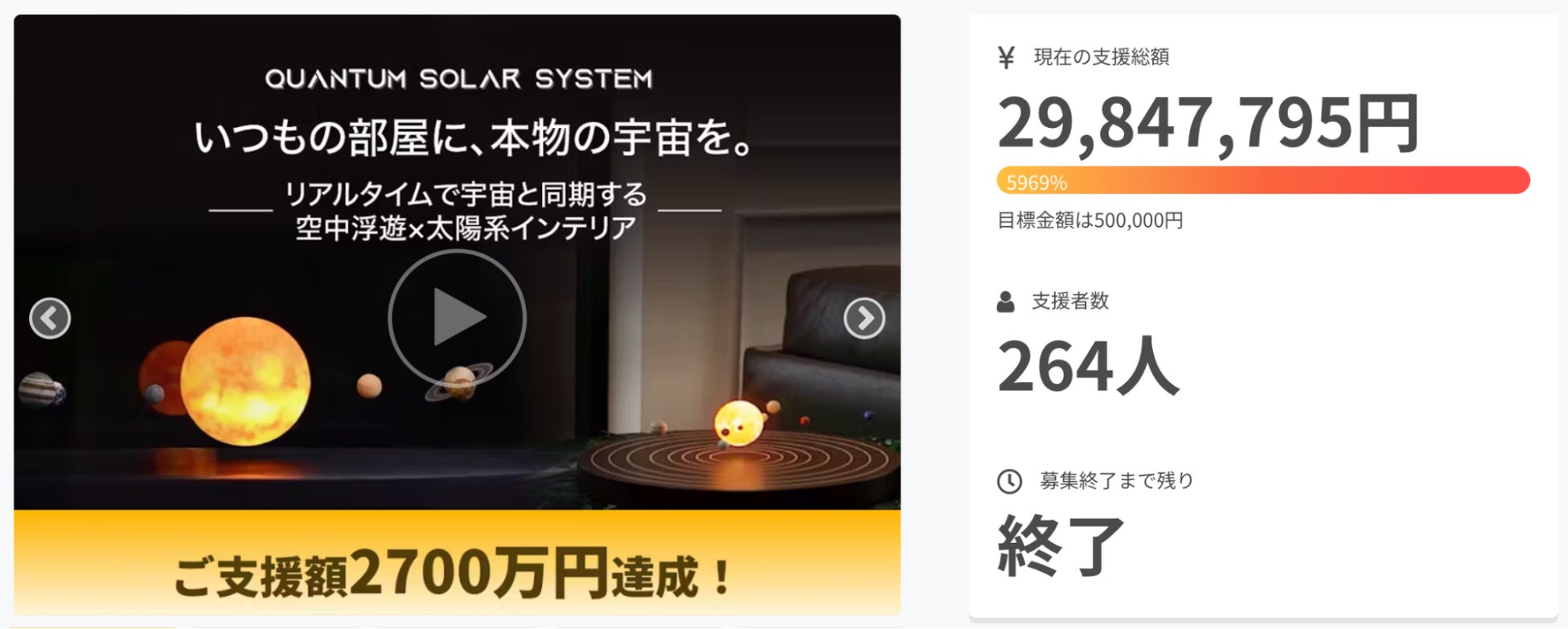 海外では新商品の開発にクラウドファンディングを活用するケースが多く、新規性の高い商品が次々と誕生しています。弊社が運営する、国内最大級のクラウドファンディング「CAMPFIRE」でも多くの海外製品が日本初上陸を果たしました。場所を選ばず何にでも印刷できる小型印刷機「Princube」は、「CAMPFIRE」史上最も多くの支援が集まり、2万人以上もの支援者から総額303,472,942円が集まりました。また、クリエイティブ作業の時間を大幅に短縮するコントローラー「TourBox Elite」や、NASAとリアルタイムで惑星の位置を同期し惑星が浮遊するオブジェ「Quantum Solar System」など、ユニークな商品が注目を集めました。