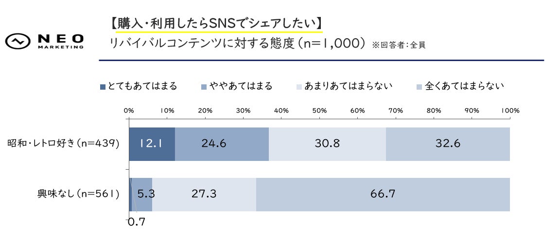 “昭和レトロ”や、若い世代にとっては“平成レトロ”といった、昔懐かしいレトロテイストなものを好む層は、他の層に比べ、SNSを通して周囲にコンテンツを広めることを厭わない傾向にあるようです。