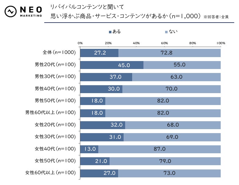全体では約30%が「リバイバルコンテンツ」を具体的にイメージできるようです。
