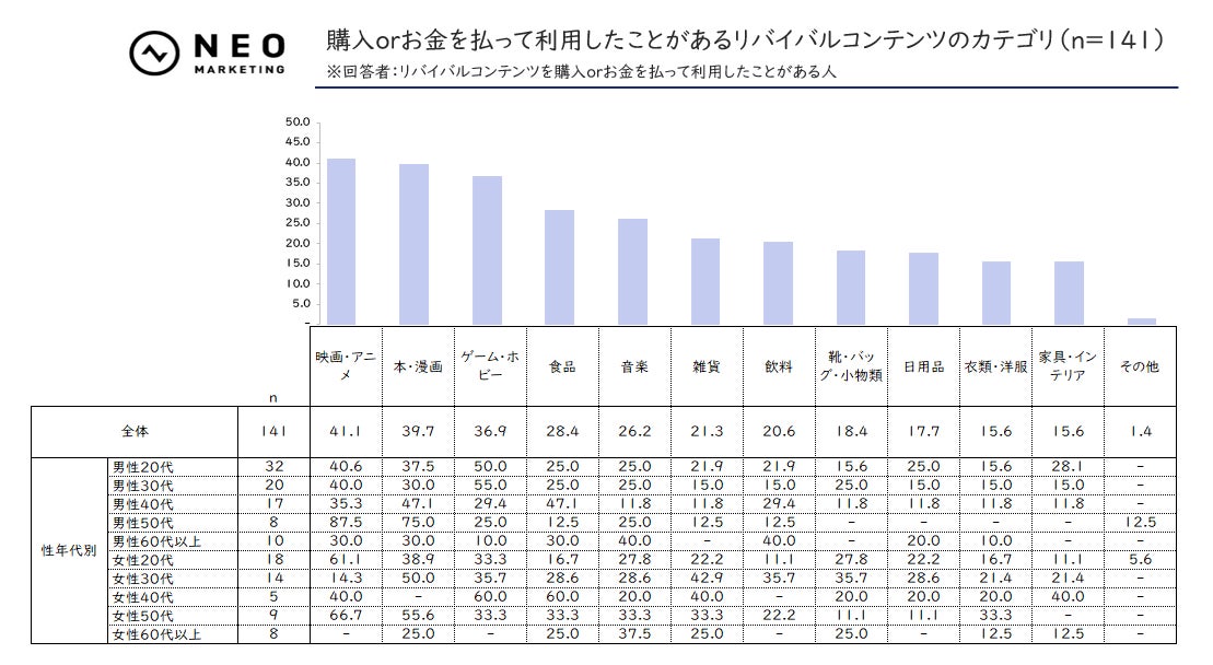 ◆購入orお金を払って利用したことがあるリバイバルコンテンツのカテゴリ(n= 141)