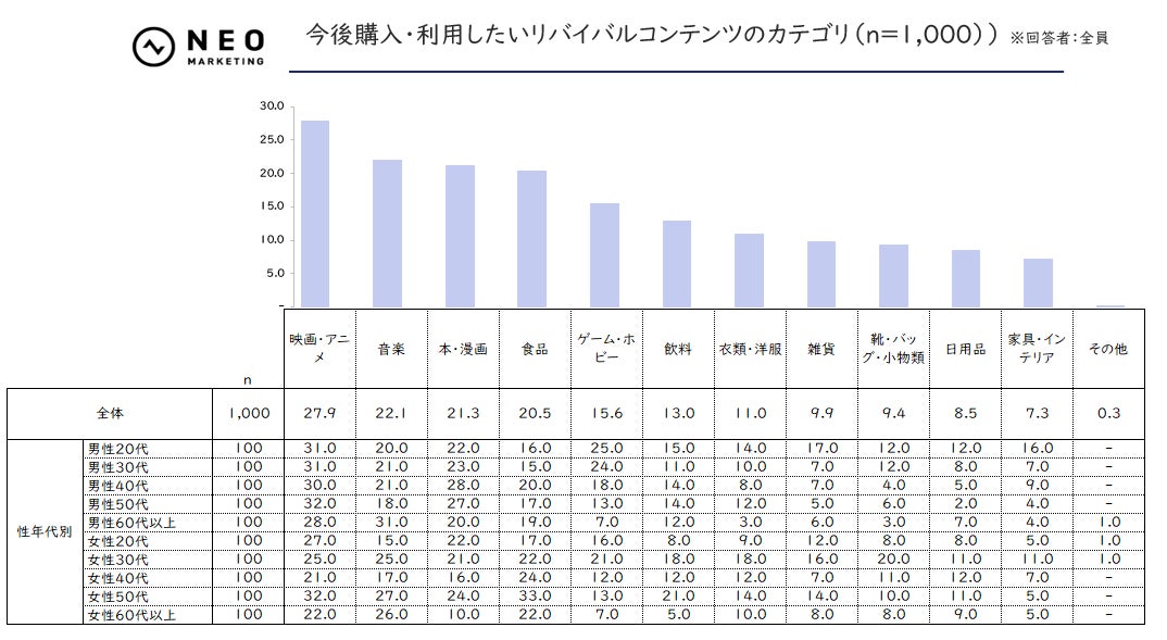 ◆今後購入・利用したいリバイバルコンテンツのカテゴリ(n= 1,000)