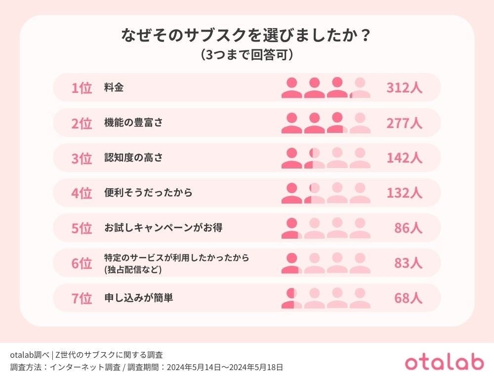 続いて、Z世代の人々がサブスクを選ぶ際に重要視しているポイントは一体どこなのだろうか。