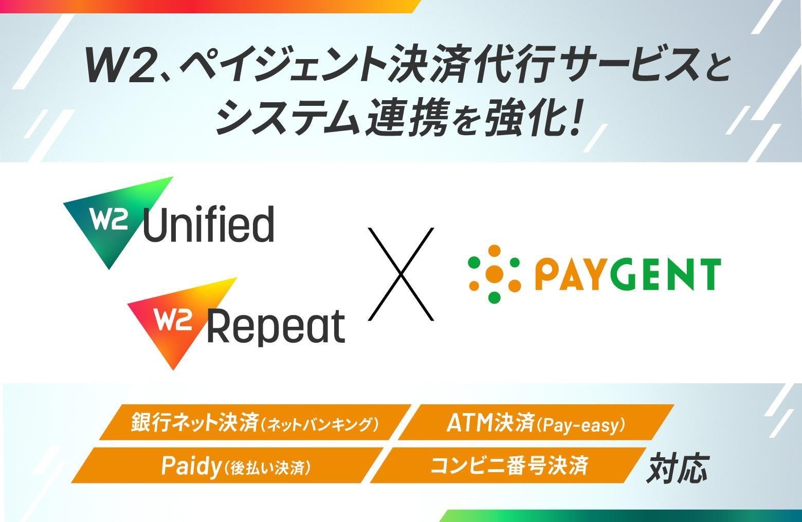 EC事業の「成功」にこだわる最先端ECプラットフォームを展開するW2株式会社(本社:東京都中央区、代表取締役CEO:山田大樹、以下W2)は、株式会社ペイジェント(本社:東京都渋谷区、代表取締役社長:河合寛、以下、ペイジェント)が提供する「ペイジェント決済代行サービス」とのシステム連携を強化し、自社が提供する統合型ECプラットフォームの決済手段に、「銀行ネット決済(ネットバンキング)」「ATM決済(Pay-easy)」「Paidy(後払い決済)」「コンビニ番号決済」が追加したことをお知らせします。