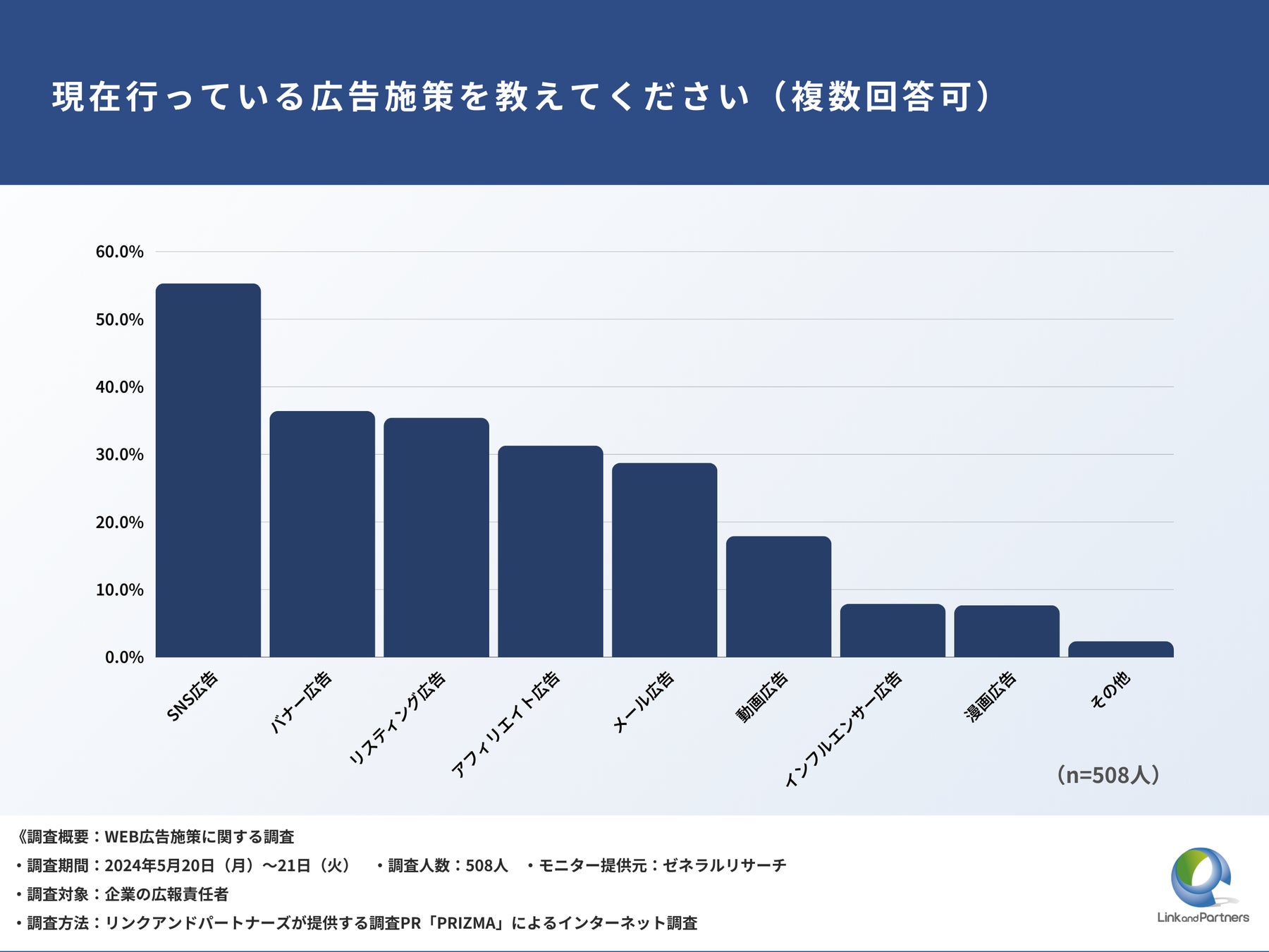 今回、株式会社リンクアンドパートナーズは、WEB広告施策を推進している担当者を対象に、「広告施策の課題と改善方法」に関する意識調査を実施しました。