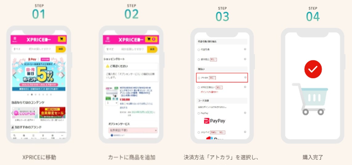 エクスプライス株式会社は、2024年6月6日より自社ECサイト(https://www.xprice.co.jp/)において、後払い決済サービス「アトカラ」(※)を導入することをお知らせいたします。このサービスの導入により、より多くのお客様に「生活を豊かにする最高の満足と感動」を提供することを目指して参ります。
