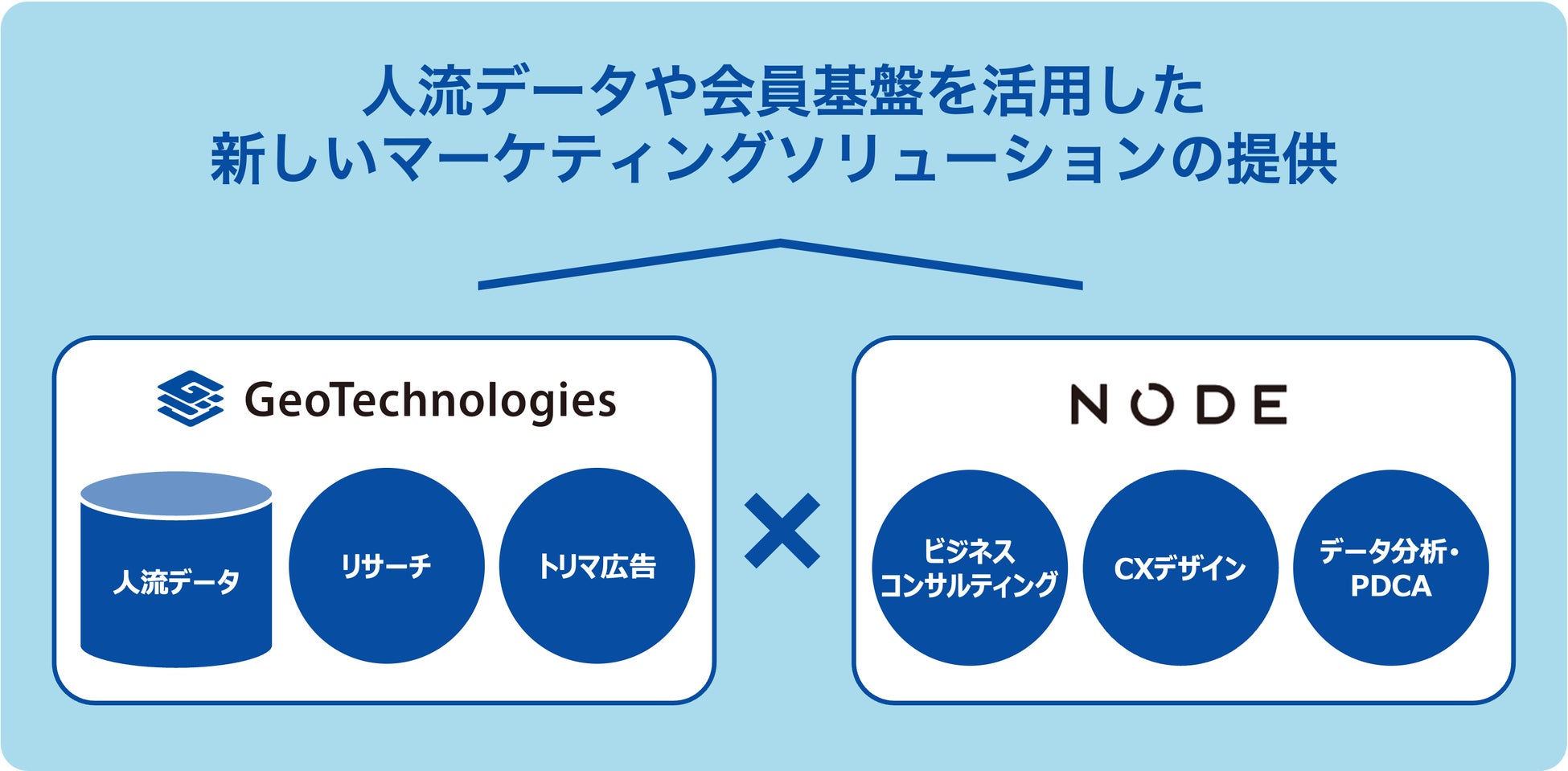 ジオテクノロジーズ株式会社(本社:東京都文京区、代表取締役会長 杉原 博茂、代表取締役社長 CEO 八剱 洋一郎、以下「ジオテクノロジーズ」)は、CXコンサルティングファームの株式会社NODE(所在地:東京都品川区、代表取締役:金 均、以下「NODE」)と協業を開始し、ジオテクノロジーズが保有する人流データや会員基盤を活用した新しいマーケティングソリューションの立ち上げと、それを通じたメーカーや小売企業などへの支援領域拡大を目指します。