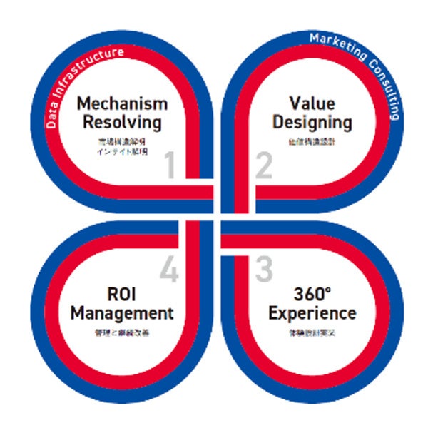 3D空間メディアの効果測定に関する取り組みは、dentsu Japanが提唱する、事業グロースのための次世代マーケティングモデル「Marketing For Growth」の4つのプロセスのうち、「Mechanism Resolving(市場構造解明、インサイト解明)」「ROI Management(管理と継続改善)」に該当するサービスです。「Marketing For Growth」については以下リリースをご確認ください
