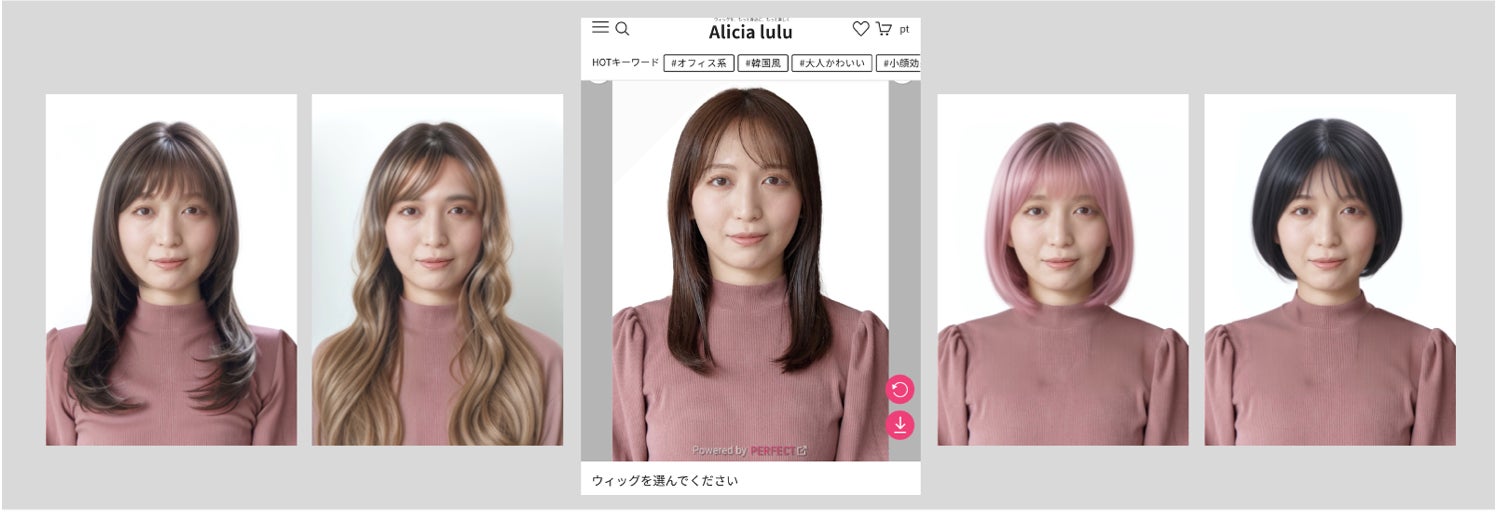 日本・東京(2024年6月10日)- 「消費者の生活をより美しく」という「Beautiful AI」をスローガンに掲げ、AR・AI技術を活用したソリューションサービスで美容およびファッション業界におけるデジタルトランスフォーメーション(DX)を奨励するパーフェクト株式会社(NYSE:PERF 以下、パーフェクト社)は2024年5月27日より、アートネイチャーグループで女性向け既製品ウィッグブランドを展開するNAO-ART株式会社(以下、ナオアート社 代表取締役社長・新徳洋揮)に、生成AI技術を活用したウィッグのバーチャル試着ツールを提供することを発表いたします。対象アイテムは、5月発売予定のファッション用ウィッグや医療用ウィッグ「RIS(リズ)」など53点。同日オープンするナオアート社のECサイト(https://alicialulu.jp/pages/ai-try_on)上でバーチャル試着体験ができます。本事例は、パーフェクト社の生成AIを活用したウィッグのバーチャル試着としては日本国内初導入事例となります。