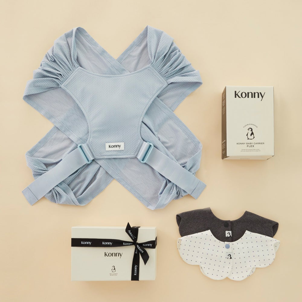 コニーのシグネチャーアイテムを詰め込んだギフトセットです。サイズ調節できるコニー抱っこ紐FLEXと大人気のコニースタイ2枚の構成でお祝いの気持ちを伝えられます。