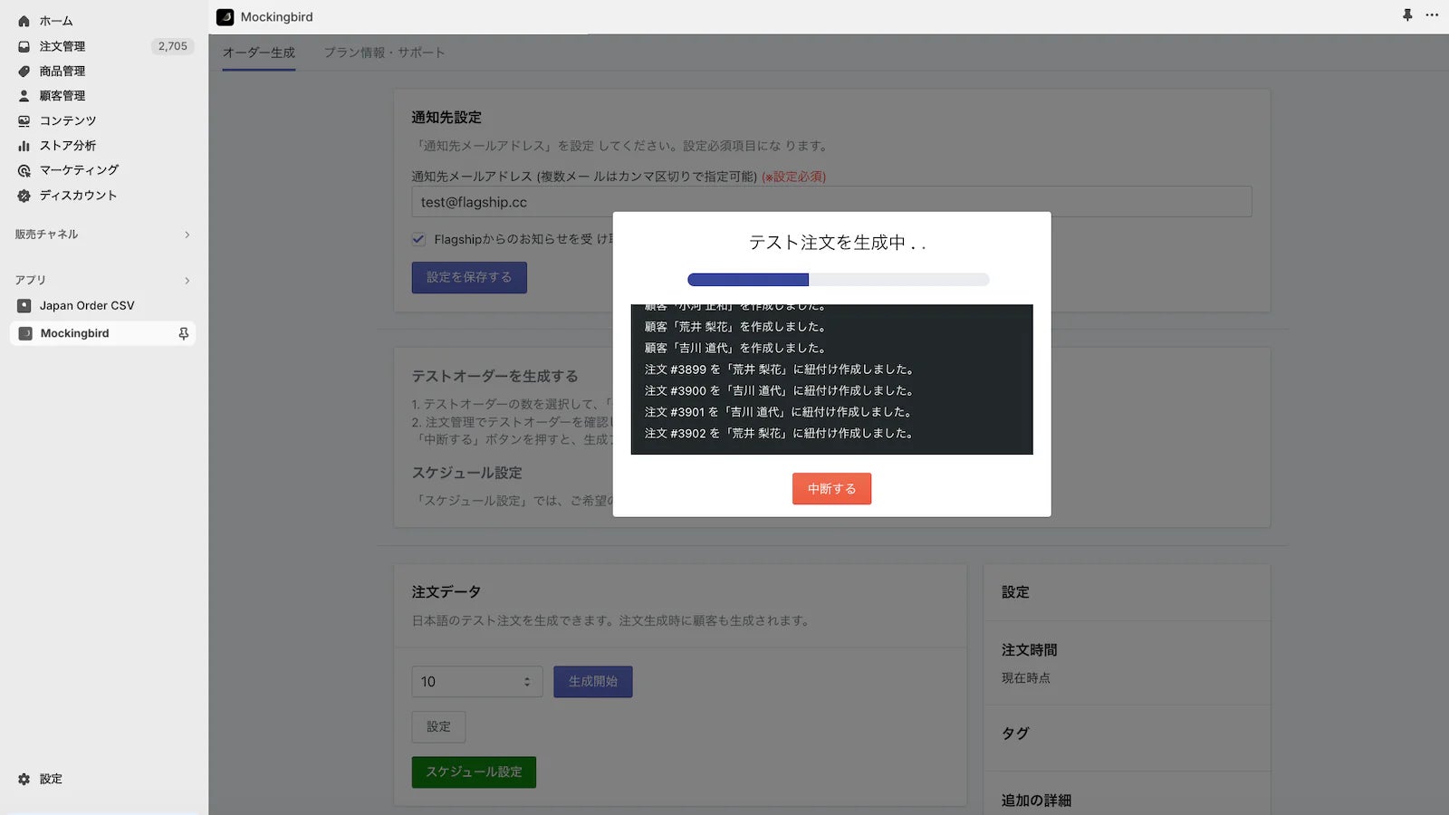 Japan Order CSV(国内最大規模の出荷アプリ)を開発運用するFlagship Inc.はShopifyストア及びアプリの開発運用支援を行うShopifyアプリ「Mockingbird」を一般公開致しました。Mockingbirdは2020年に開発し、データ連携開発等のテストをする際にFlagship Inc.社内で限定利用していました。運用が進む中で社内ユーザーの増加、機能要望等も改修し、この度Shopify storeに公開することでより幅広くShopifyテストのニーズに応えられると考え、一般公開するに至りました。Shopifyストア及びアプリの開発運用の効率化に大きく貢献します。