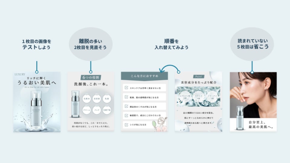 分析結果を元に、画像の並び替えや差し替え、削除や追加などを簡単に行うことができます。