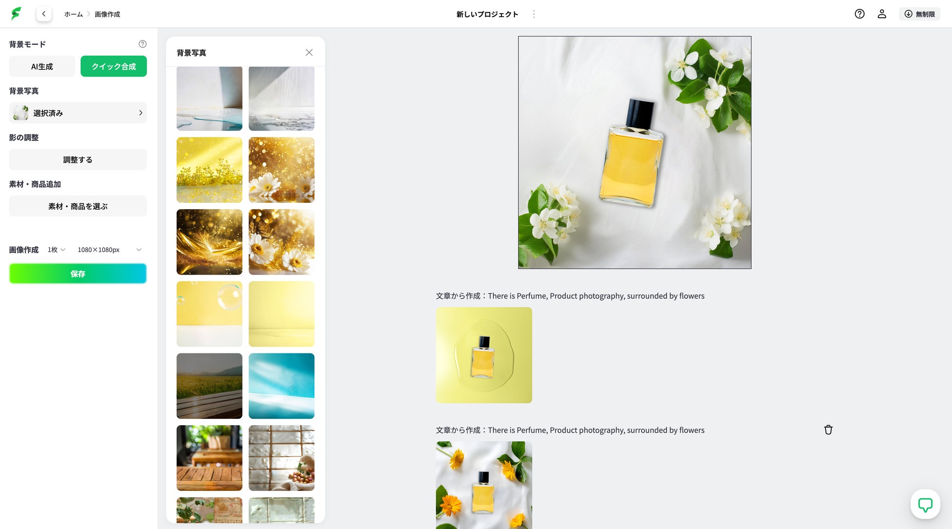 背景画像は事前に用意された画像から選択するだけで、複雑なプロンプトは必要ありません。