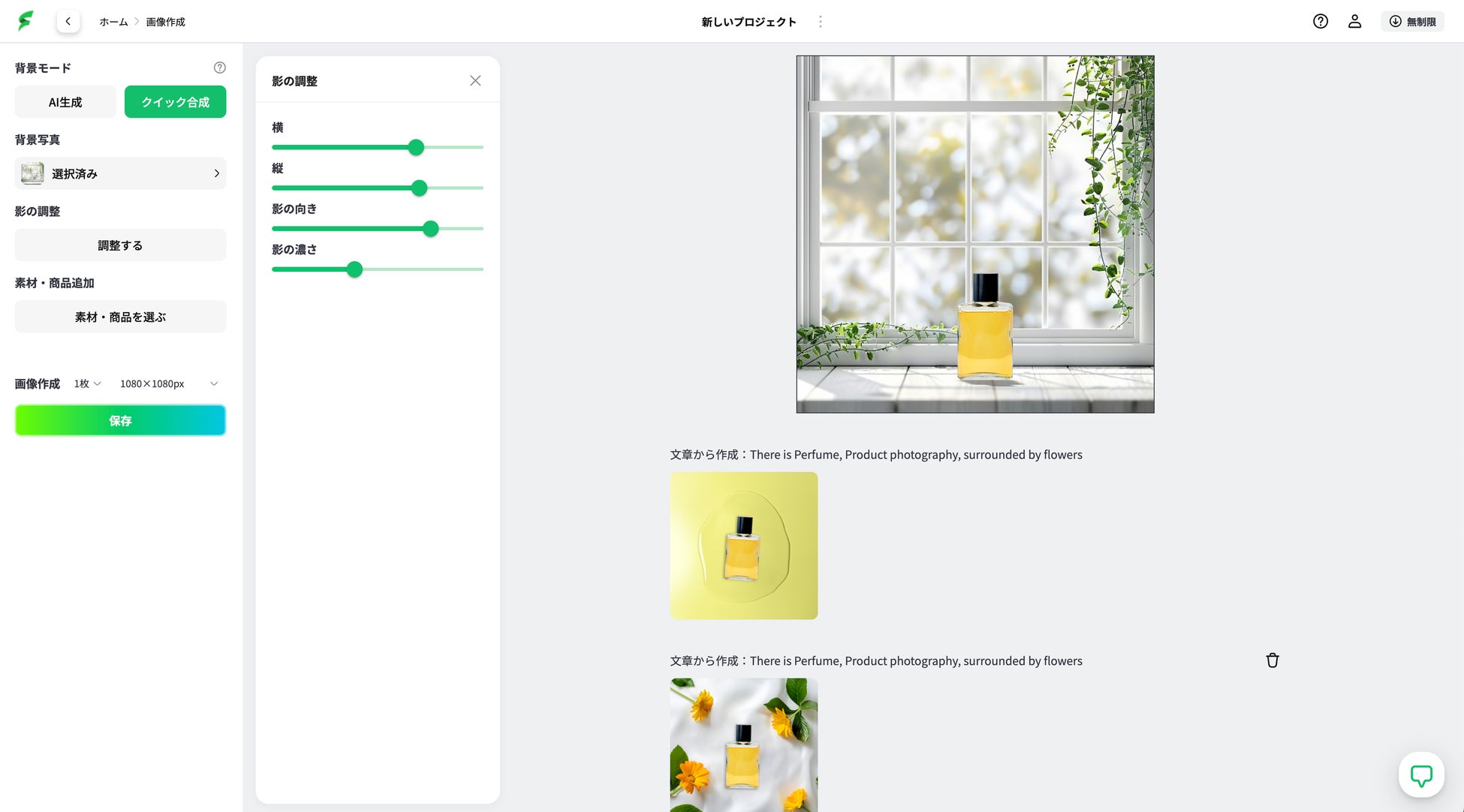 クイック合成機能はAIを活用し、プロンプト入力なしで簡単に商品の影や光を調整し、誰でも高品質な合成を実現するためのツールです。特にマーケティング担当者、デザイナー、SNS運用担当者にとって非常に有用な機能となっております。