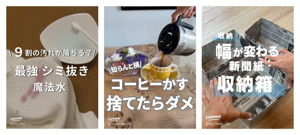 その他にもコーヒーかすを使った消臭方法などの「キッチン裏技ハック」、新聞紙などを使った「収納箱代用テク」やその活用方法にも関心が集まりました。