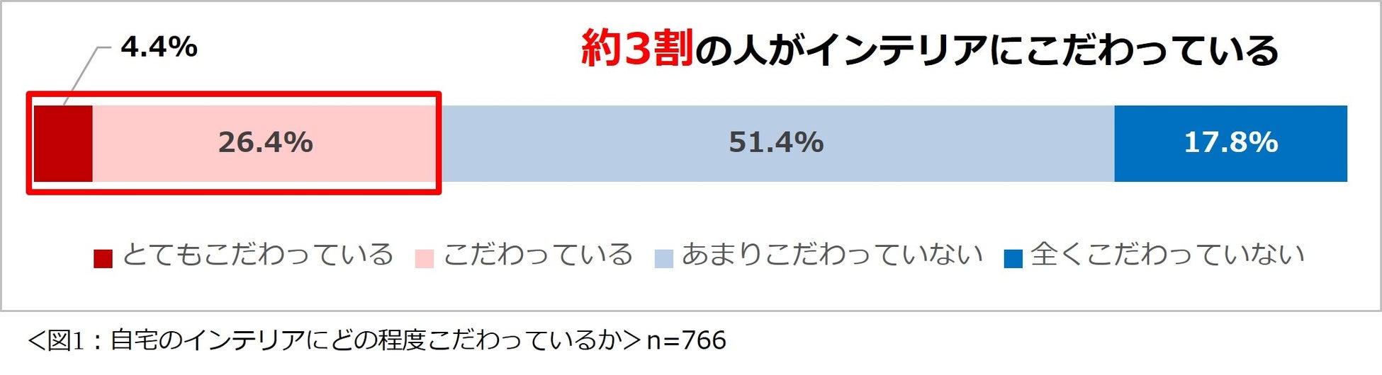 (4.4%)、「こだわっている」(26.4%)と回答した人を合わせると約 3 割の人が自宅のインテリアにこだわっていることが分かりました。(図 1)