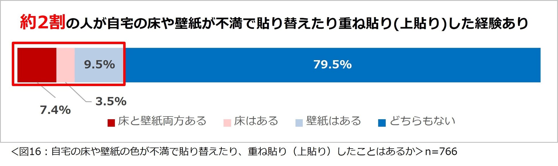 自宅の床や壁紙の色が不満で貼り替えたり、重ね貼り(上貼り)したことがある人は約 2割。