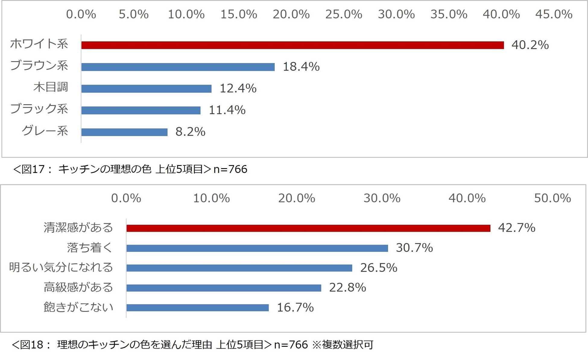 また、キッチンの理想の色を選んだ理由を尋ねたところ、「清潔感がある」という理由が最多で約 4 割の人が回答しました。(図 18)