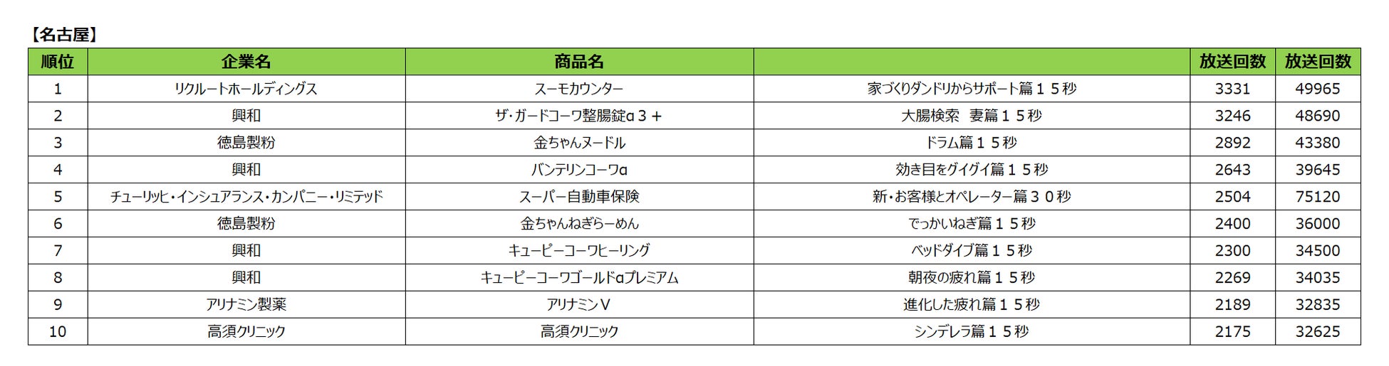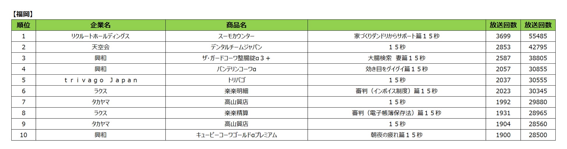 エリア別ランキングも全国ランキング同様、長寿CMが上位を占める中、各地域の個性的なローカルCMもランクインしました。