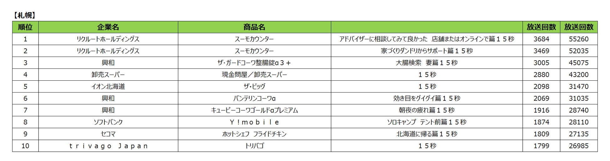 【調査方法】動画認識エンジンを活用したテレビCM自動認識システムにて取得した放送履歴情報を基に調査