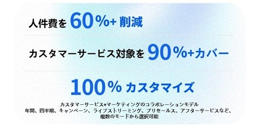 コンバージョン率の向上:ディープラーニングとリアルタイムのデータ分析により、質問解決率を40%から90%以上に、コンバージョン率も5~10%増加させることができます。顧客はより迅速で正確な回答を得ることができ、顧客満足度とロイヤルティの向上につながります。
