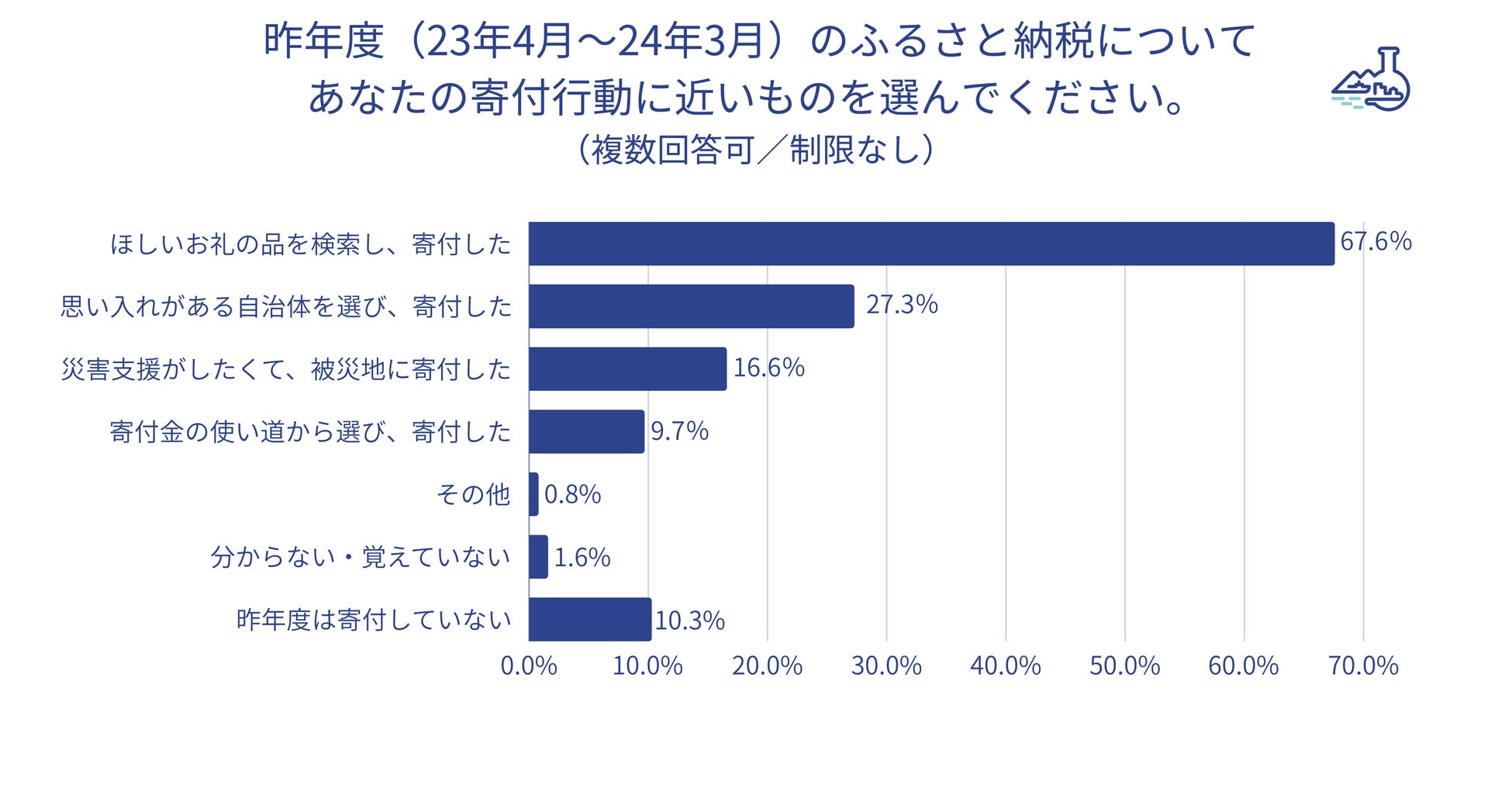 ・ 2023年度のふるさと納税の寄付行動は「お礼の品を検索し、寄付した」(67.6%)が最多。