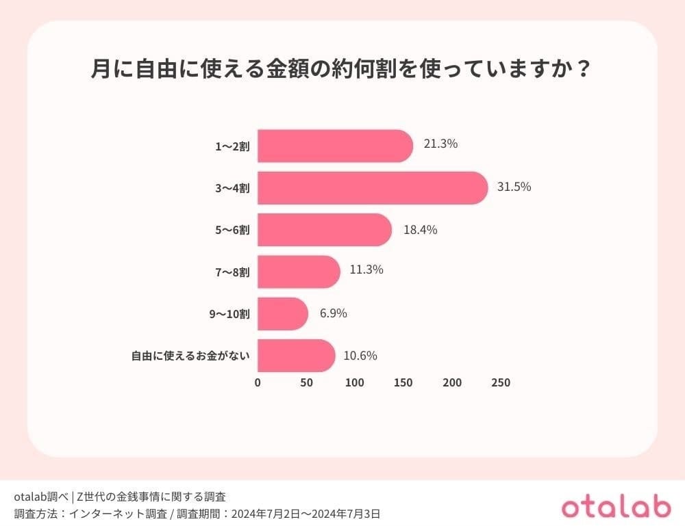 Z世代は月に自由に使える金額のうち『約3~4割』を使っていると回答