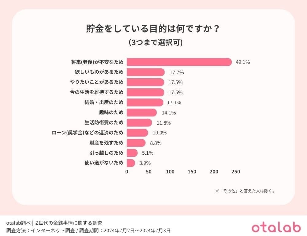 - 9 Z世代が貯金をしている目的は『将来が不安』次いで『欲しいものがある』