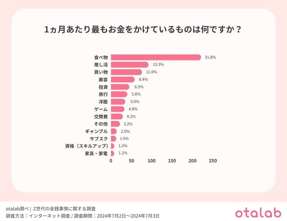 - 3 Z世代が1ヵ月あたり最もお金をかけているのは『食べ物』、次いで『推し活』
