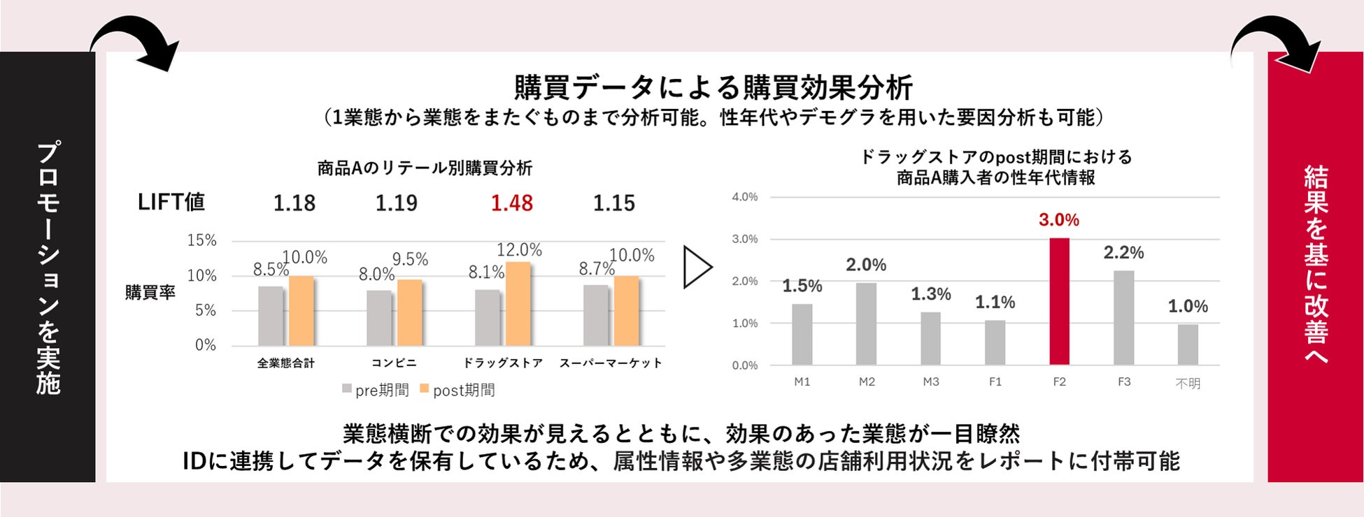3. 業態ごとの購買効果検証で、次の施策への示唆を得られるレポートを提供