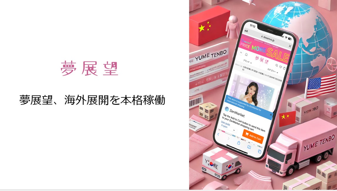 夢展望は、引き続き、海外販路の拡張を積極的に進め、夢展望が手掛ける各商品の販売拡大を推進してまいります。