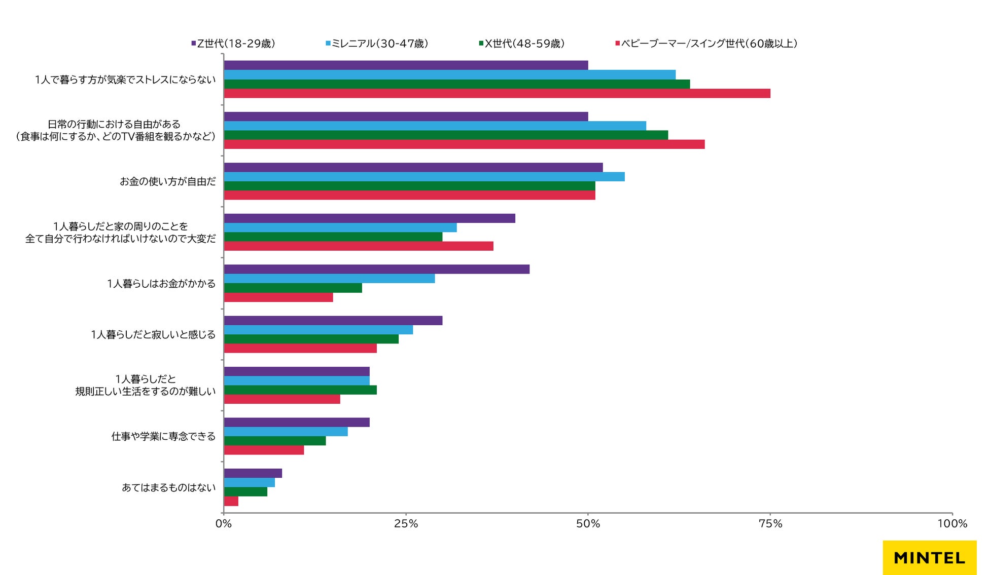 ロンドン本社を含め13か国にオフィスを構える市場調査会社「Mintel Group」の日本法人であり、美容やライフスタイル、食品・飲料分野におけるグローバル調査に強みを持つ、株式会社ミンテルジャパン(東京都千代田区)は、今年発刊したミンテルジャパンレポート「単身世帯へのマーケティング 2024年」の中で、ソロエコノミーの台頭や世代別の単身者動向を明らかにしました。