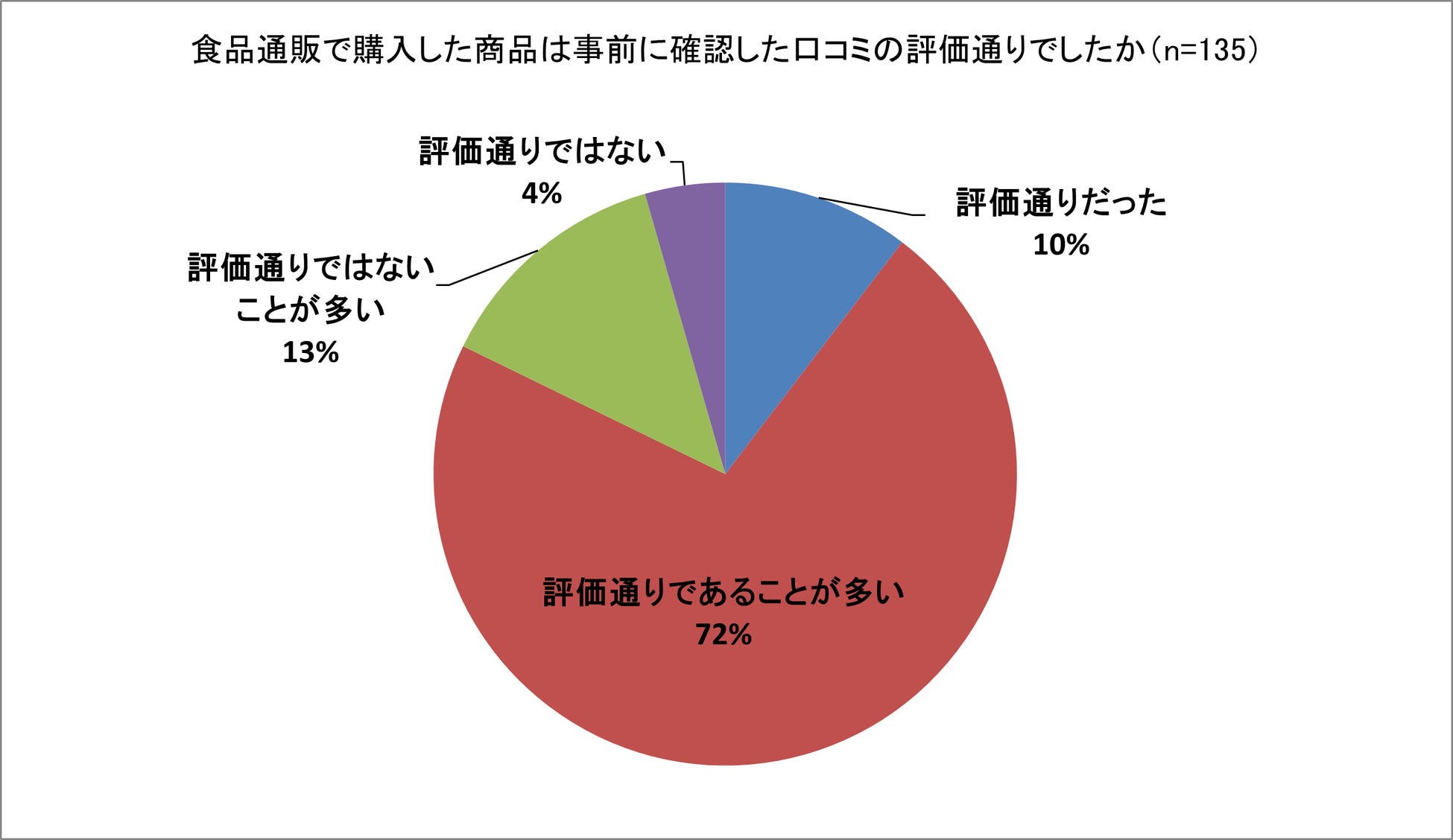 ・口コミを参考に購入した商品について72%以上が「評判通り」