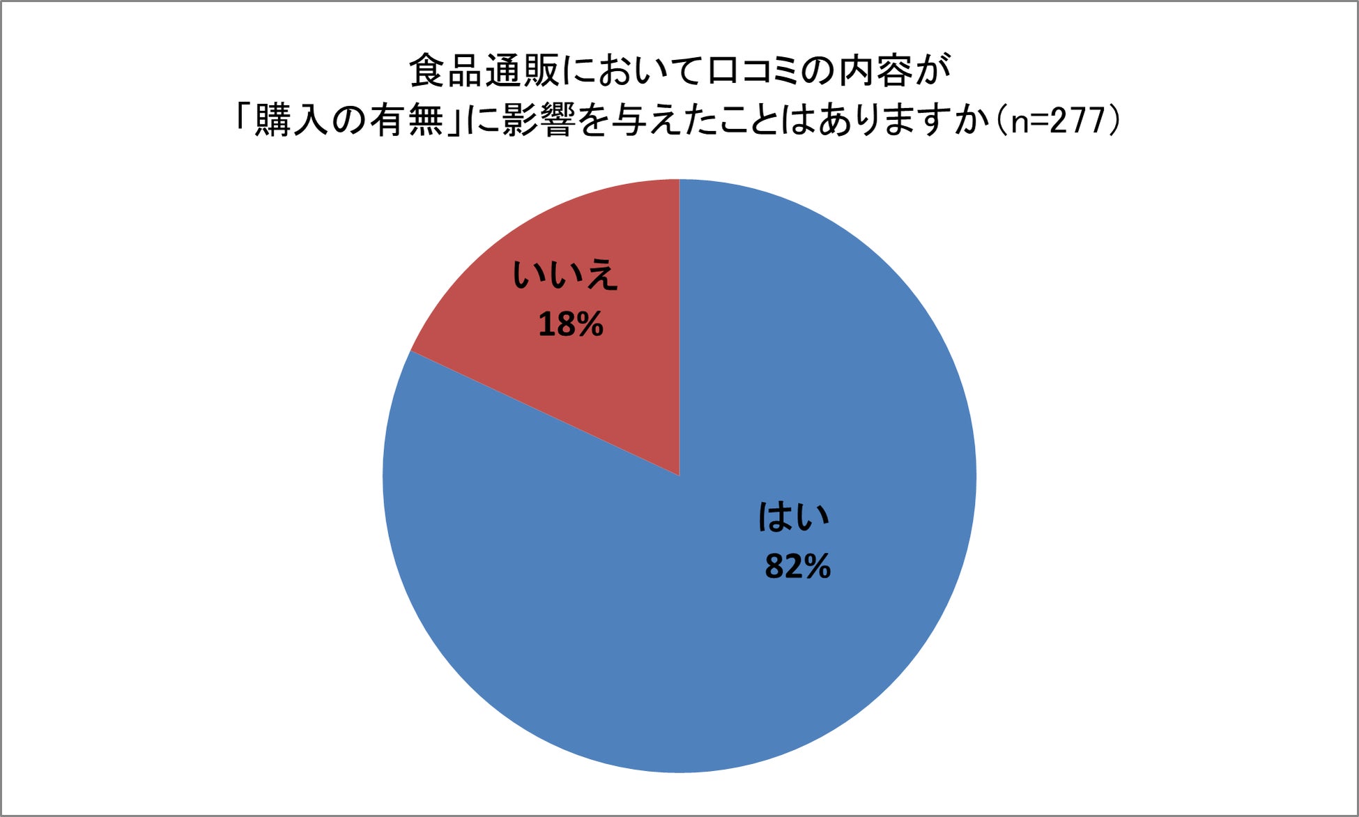 商品の口コミについて、82%が「購買に影響がある」と回答しています。その理由として「細かな消費者目線でお店の説明よりさらに身近に感じられるので(50代・女性)」「最後背中を押してもらうような感じ(50代・女性)」「他の情報と比較して検討材料にします(40代・女性)」「口コミの評価が悪い、または同じような意見が多い場合は購入を控える(30代・女性)」と回答しており、口コミが購買意欲や動機に影響を与えていることが分かります。