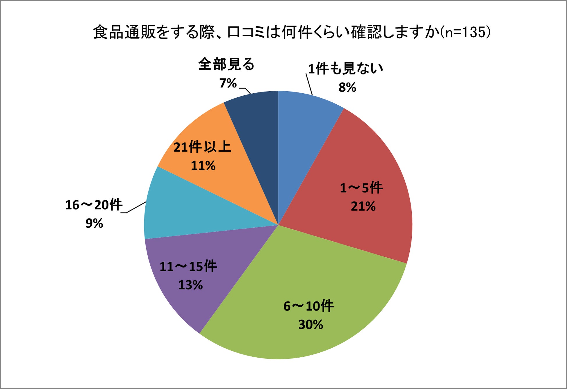 実際に確認する口コミの件数は「6~10件」が最多の30%、次いで「1~5件」が21%でした。一定数の口コミ数があったほうが、商品を購買するきっかけや信頼度につながると推測されます。