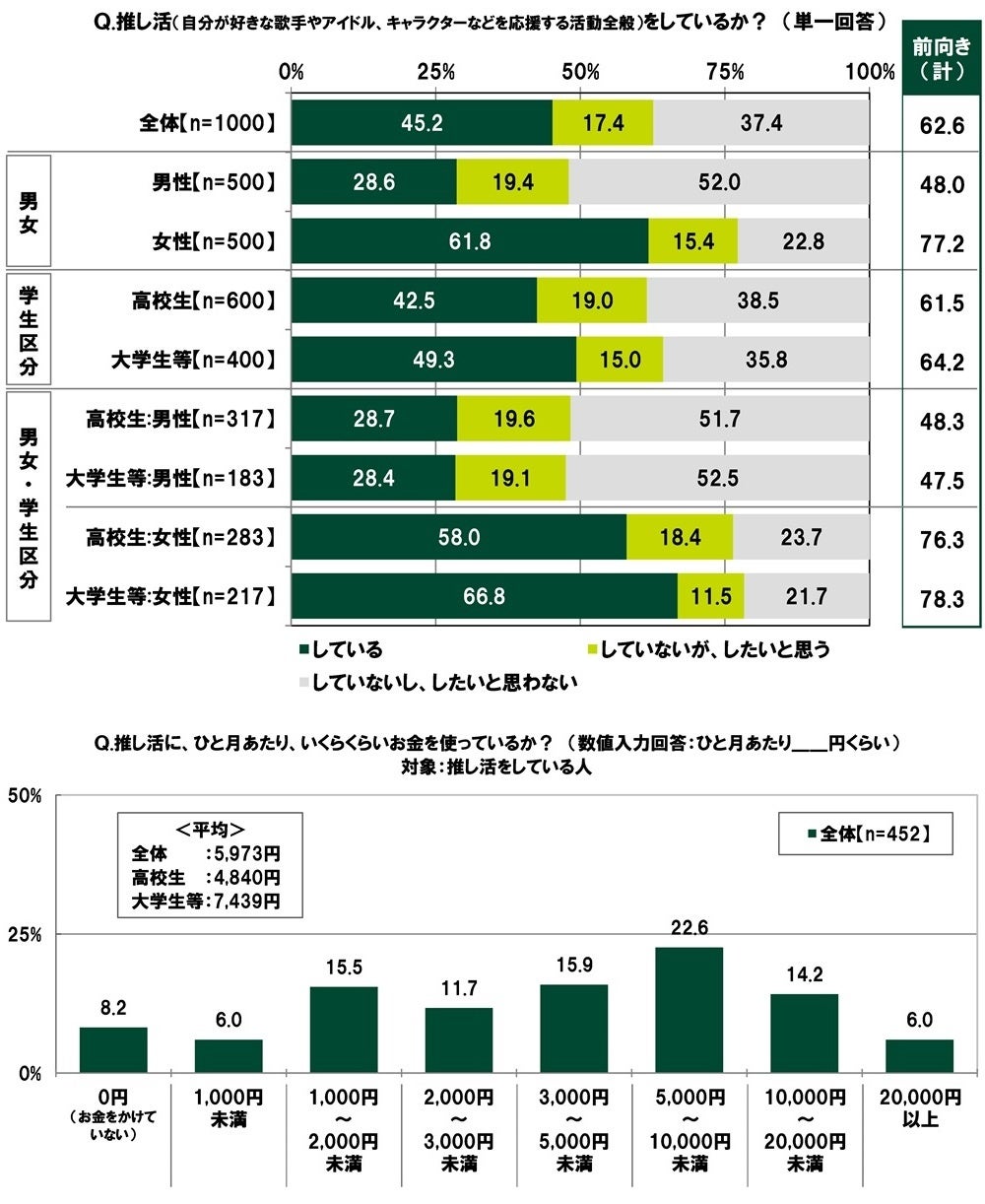 - 「推し活をしている」10代の45.2%、女性では61.8%
