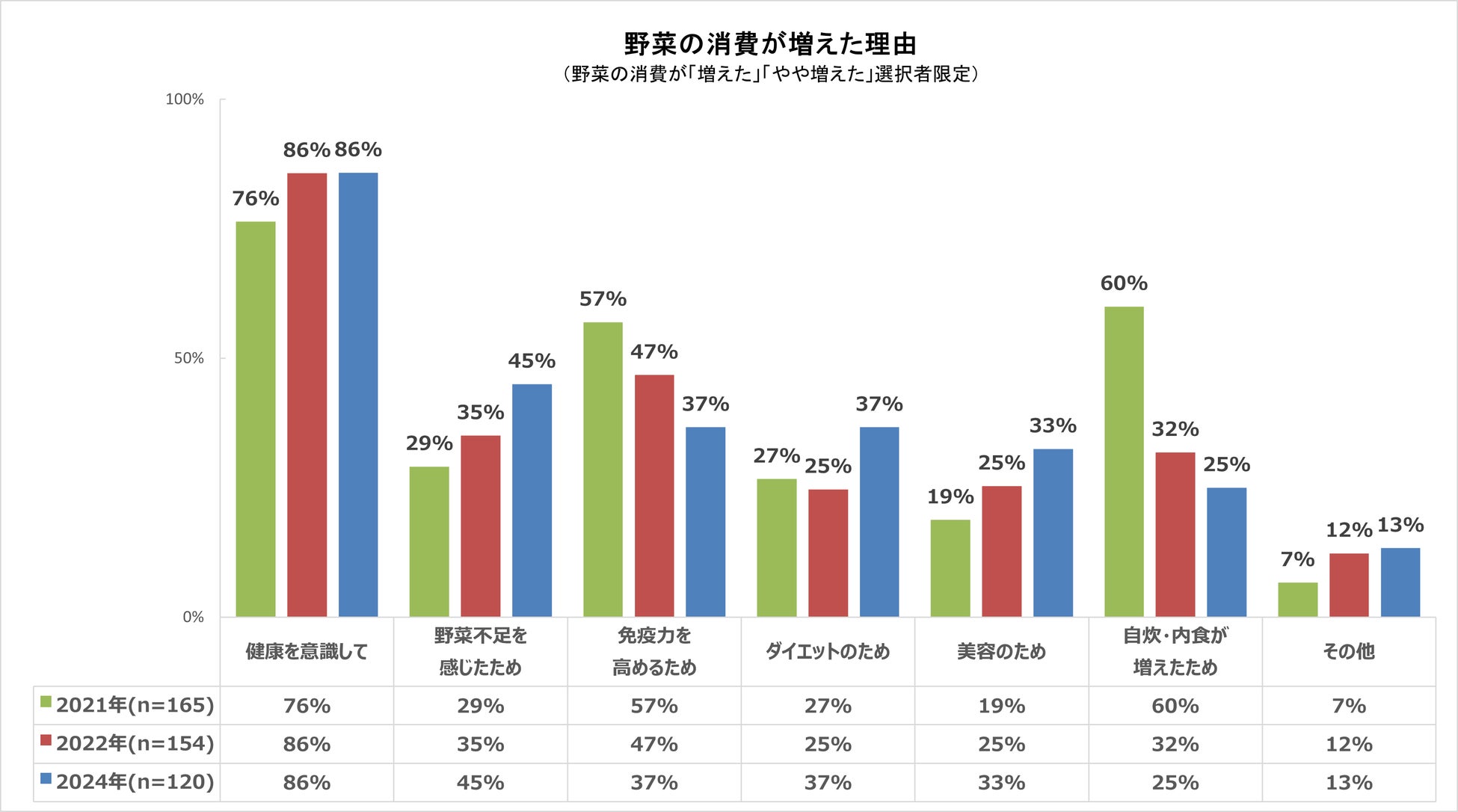 ・野菜の消費が増えた理由、「健康意識」が最多。「ダイエット」「美容」も伸長