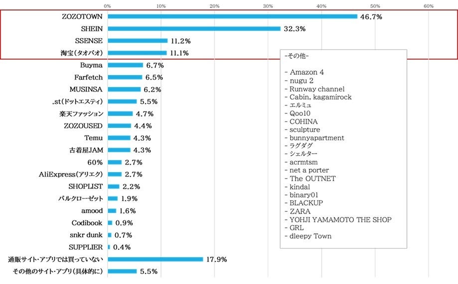 - 1.2.4 4. ファッションアイテムを購入した通販は「ZOZOTOWN」「SHEIN」に集中。 通販の多様化・越境も進む。