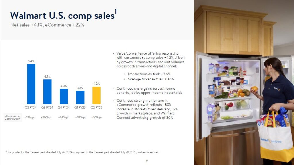特にeコマースと広告事業は急成長を遂げており、サムズクラブを中心としたメンバーシップ事業も堅調です。同社の多角化戦略は引き続き効果を上げており、今後も安定した成長を期待できる状況です。