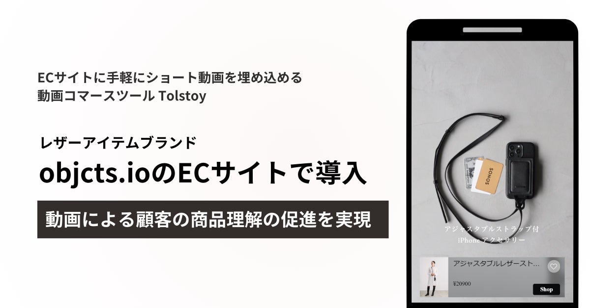 アナグラム株式会社(所在地:東京都渋谷区、代表取締役社長:阿部 圭司)が日本における導入サポートを行う動画コマースツール「Tolstoy(トルストイ)」が、レザープロダクトブランド「objcts.io(オブジェクツアイオー)」の公式通販サイトに導入されました。