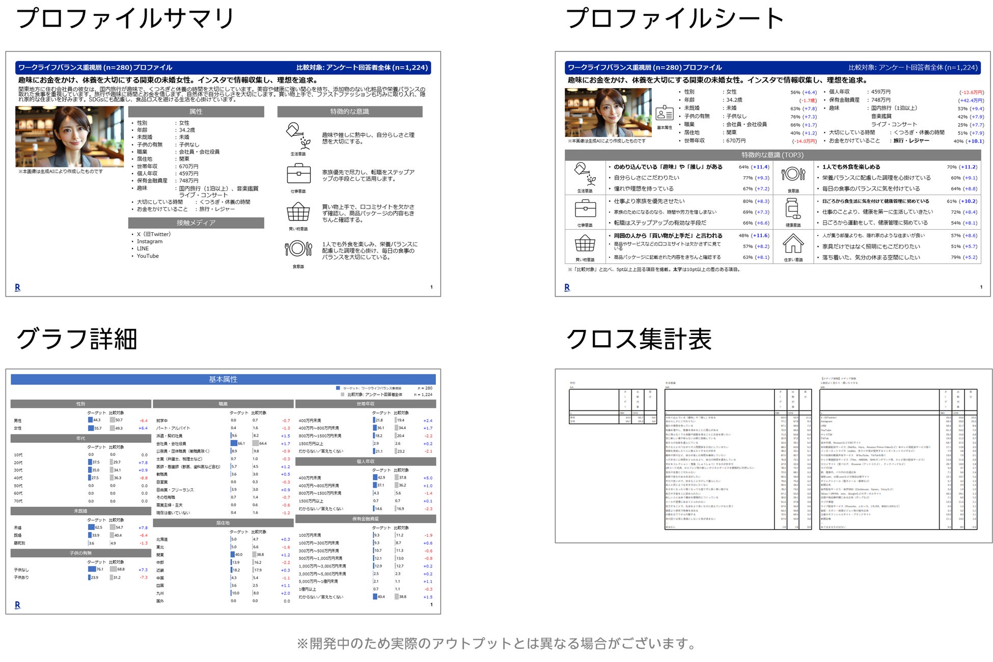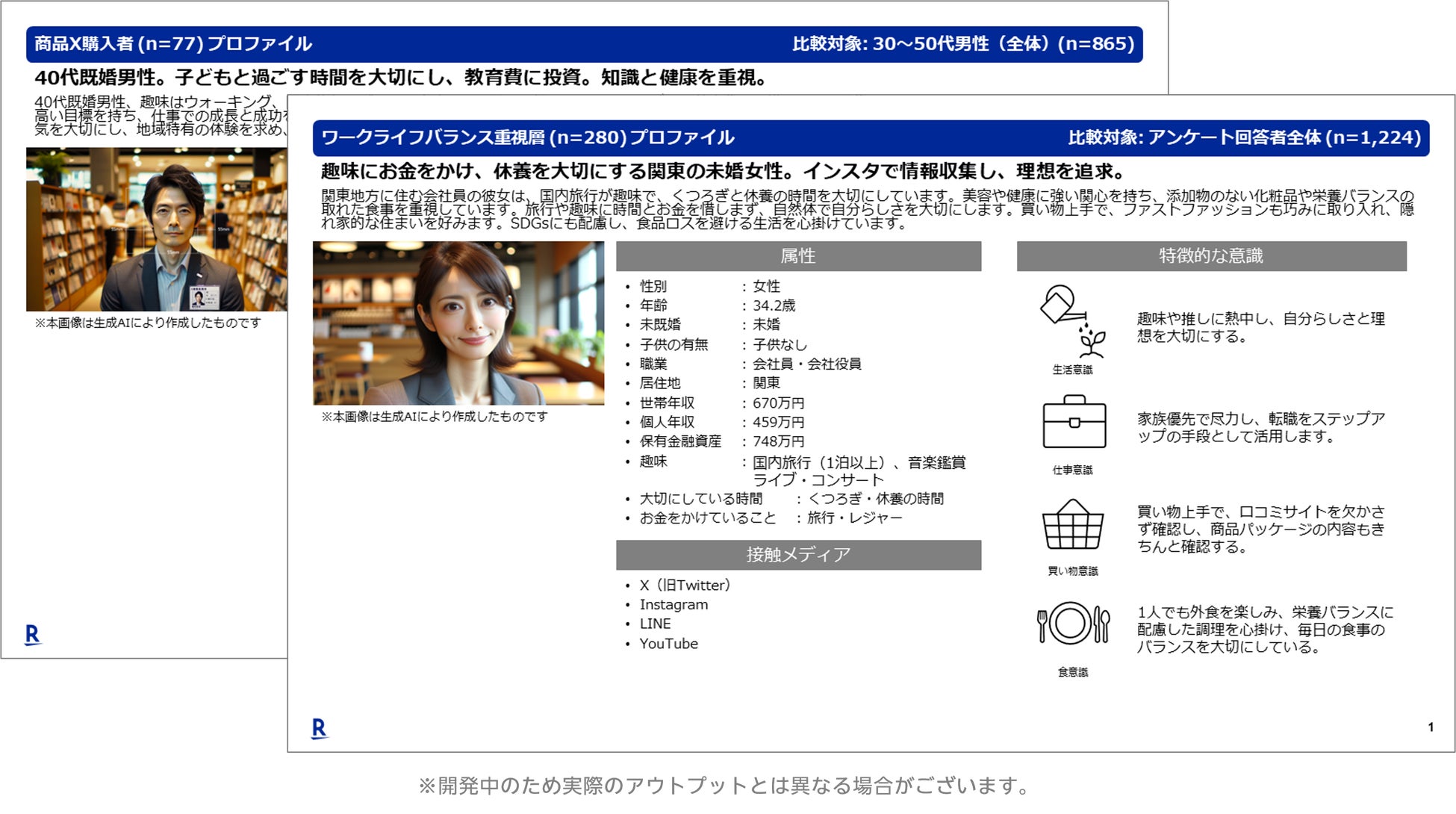 ・ターゲットの意識や価値観に踏み込んだ深いプロファイルの自動生成が可能