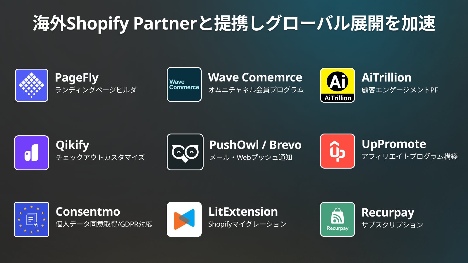 株式会社ECPowerは、これまでに米国・欧州・香港・ベトナム・インド等の10社以上の海外Shopify Partner企業とパートナーシップを結んでいます。今後も海外市場におけるパートナー網の拡大に注力し、アプリ・ソリューションの相互連携やユースケース開発によるユーザーへの提供価値向上に取り組むと同時に、共同マーケティング活動による事業拡大を進めてまいります。