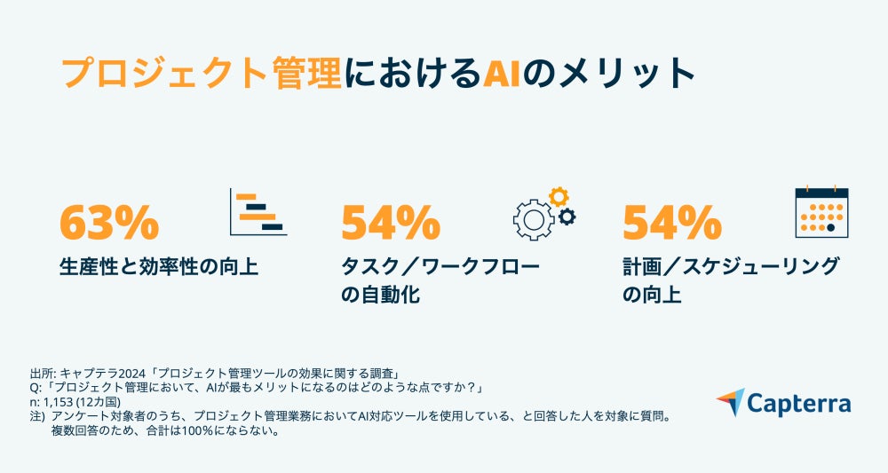 本記事は、キャプテラ(Capterra)のWebサイトに掲載されている「AI導入でプロジェクト管理が変わる!63%のPMが実感する効率性と生産性の向上」の一部を抜粋したものです。
