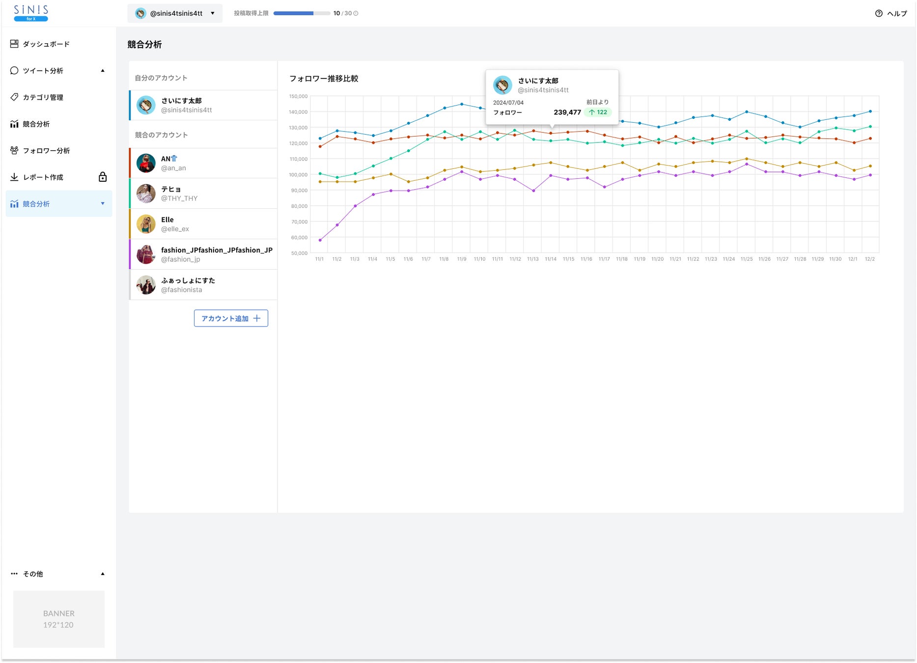 企業向け SNSマーケティング支援を中心としたビジネス展開をするテテマーチ株式会社(本社:目黒区、代表取締役:上田 大介)が運営するX(旧Twitter)分析ツール「SINIS for X(サイニス フォー エックス)」は、STARTERプランで競合分析機能を提供開始しました。