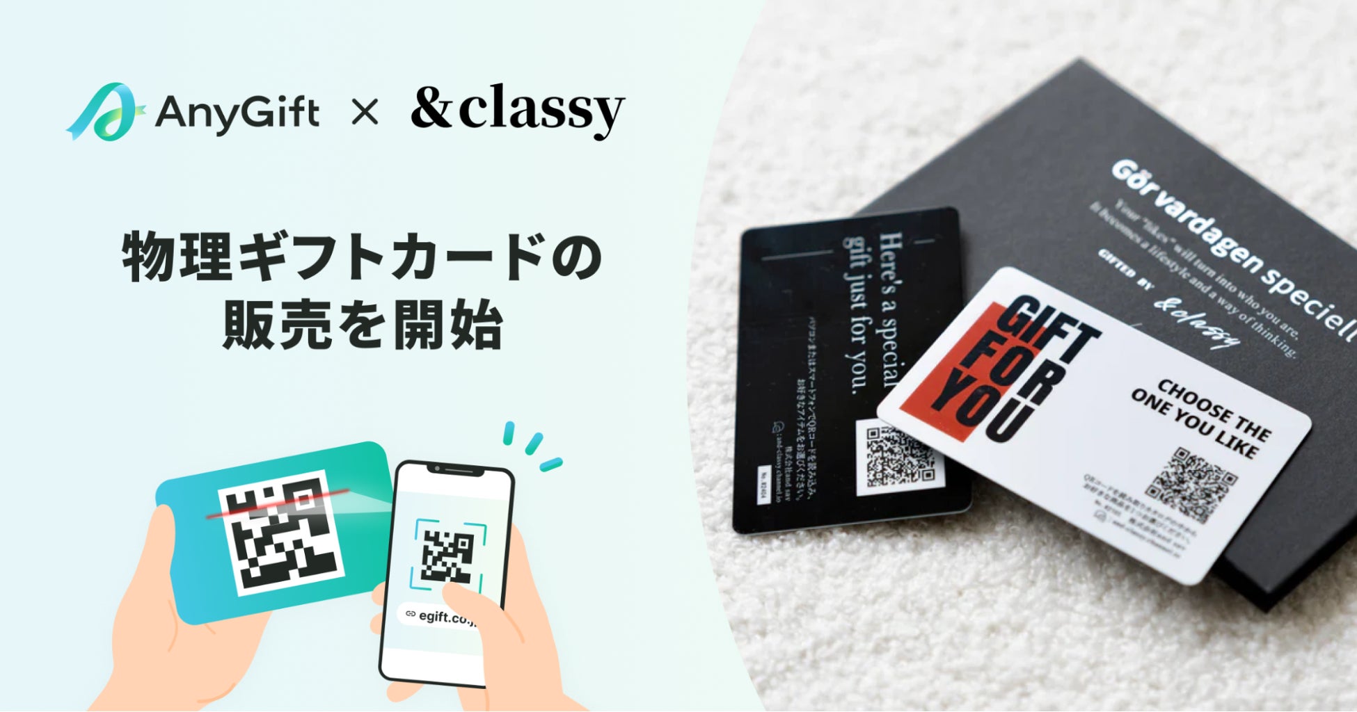 AnyReach株式会社(本社:東京都中央区、代表取締役:中島 功之祐)は株式会社and sav(本社所在地:熊本県熊本市中央区、代表:嶋崎 安美)が展開する「&classy」にeギフトサービス『AnyGift(エニーギフト)』の機能を活用した物理ギフトカードの提供を開始いたしました。
