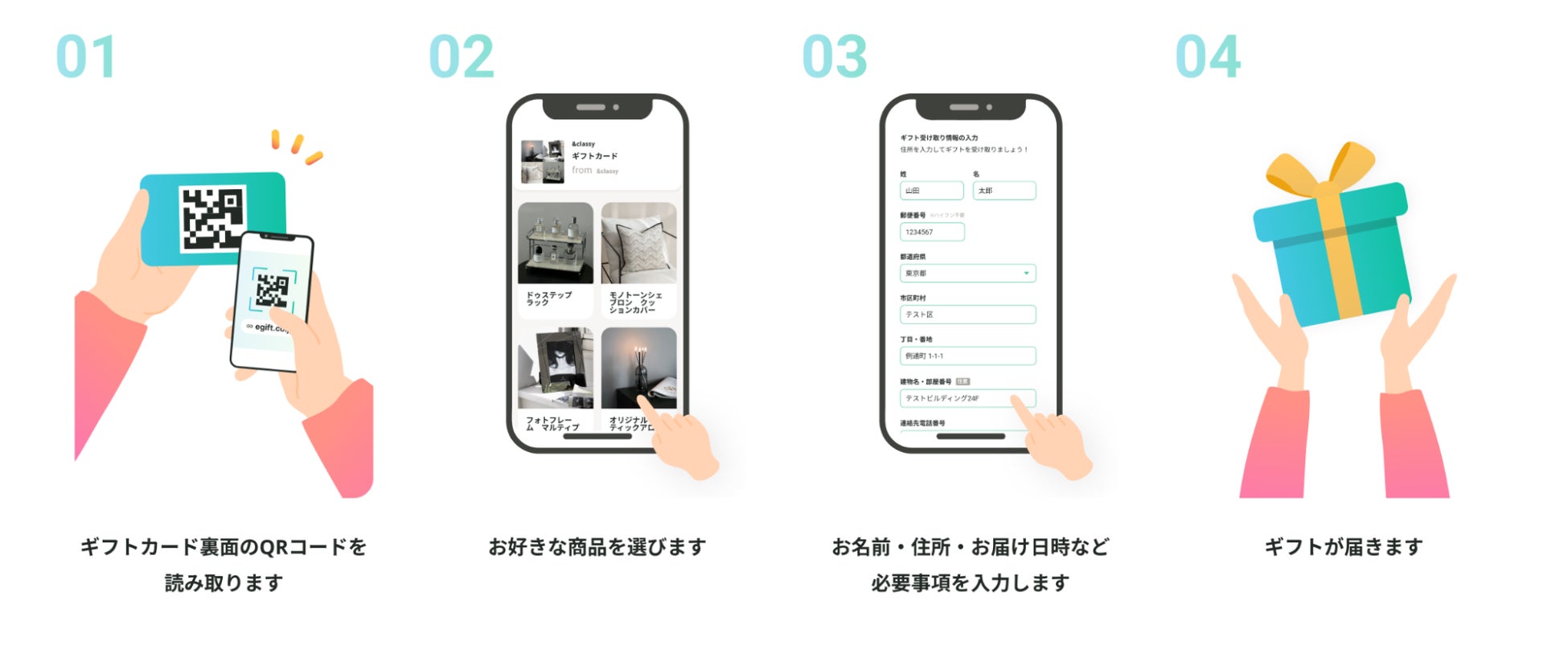 4)指定したお届け先の住所にギフト商品が届きます