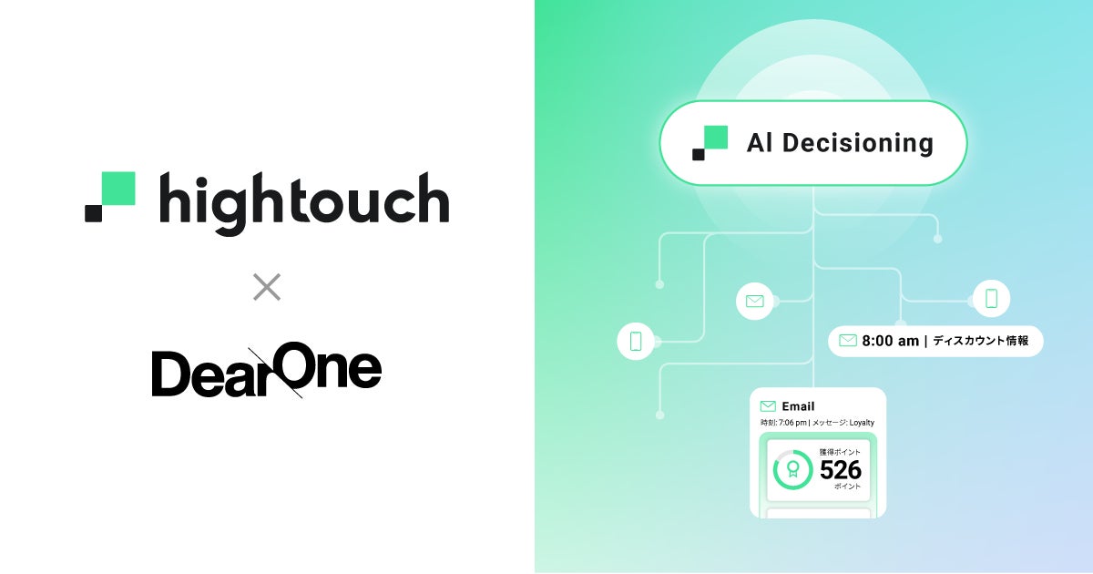 株式会社NTTドコモのマーケティング分野における新規事業型子会社である株式会社DearOne(本社:東京都港区、代表取締役:河野 恭久、以下:DearOne)が、代理店として取り扱っているコンポーザブルCDP*「Hightouch(ハイタッチ)」は新機能「AI Decisioning(直訳、AI意思決定)」を発表し、先行して米国での提供を開始しました。今後、日本での提供も開始される予定です。