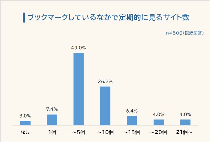 スマホやパソコンにブックマークしているサイトは「2~10個」