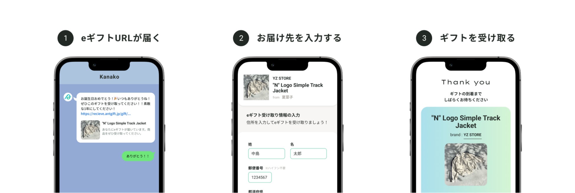 eギフトURLから住所を入力いただくだけで対象商品が届きます